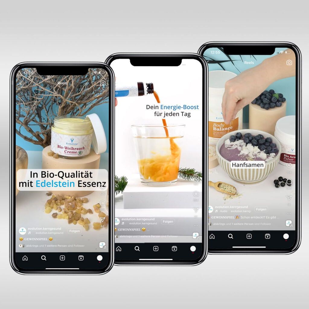 Wir unterstützten die interne Social Media Managerin mit einer flexiblen, unkomplizierten Content-Produktion: knackige Reels und Shorts, die die Produkte kreativ in Szene setzen, saisonale Gewinnspiele, die die Interaktion fördern, und immer wieder frische Ideen wie Rezept-Videos, um den Feed lebendig zu halten. Dabei achten wir auf kurze Abstimmungswege, schnelle Umsetzungen und ein einheitliches visuelles Storytelling, das den Qualitätsanspruch von Evolution sichtbar macht.